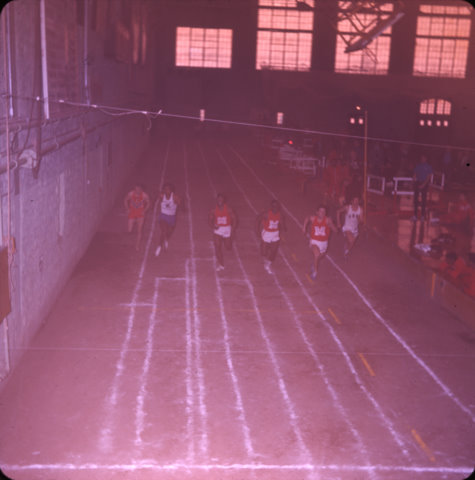 ![]() Walter Smallwood, Al Holmes, & Lester Williams finish 3rd, 2nd & 1st in the 60 yd dash at the MIAA Indoor Conference. |