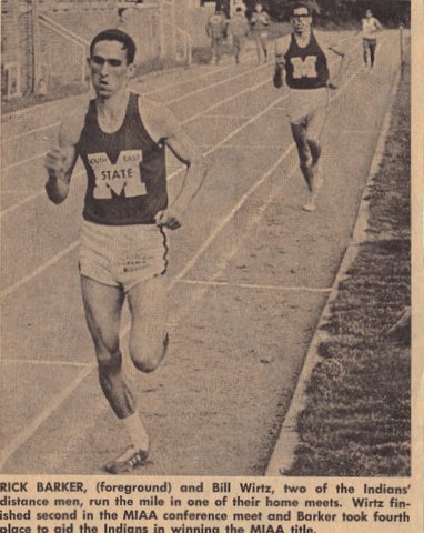 Bill Wirtz and Rick Barker compete in the Mile Run at the 1968 Indoor Conference Meet.