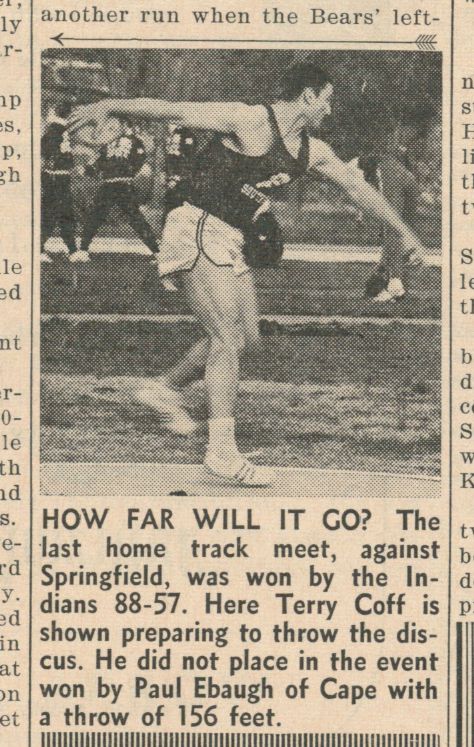 Terry Coff puts the shot in 1967 at the Springfield Relays.