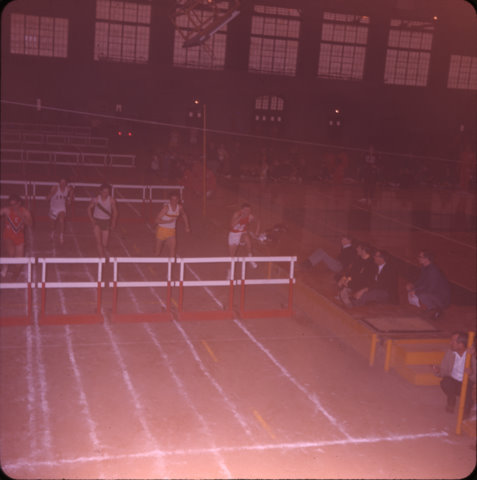 Dwain Bridges pole vaulting at the 1968 MIAA Indoor Conference Meet in Columbia |