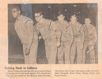 1966 MIAA Track Event Champions Back L-R: Curtis Williams (High Jump, Long Jump), Walter Smallwood (440 Relay), Bruce Frankie (440 Relay), Paul Ebaugh (Discus). Front L-R: Dean Kimmich (440 Relay), George Hester (440 Relay). |