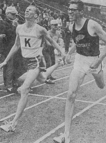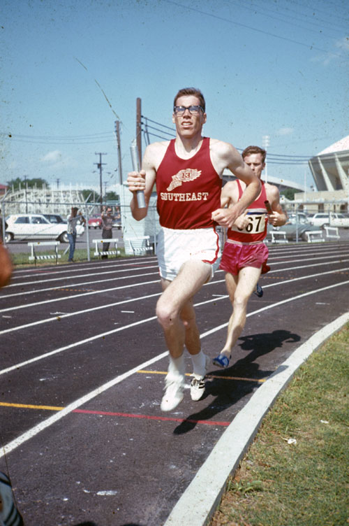 ![]() Frank Cruse, normally a hurdler, is pictured finishing one of the relay races that he also ran in 1966. |