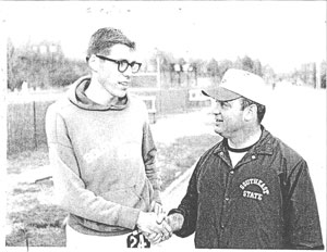 ![]() Coach Rosengarten pictured on a 1969 recruiting visit with